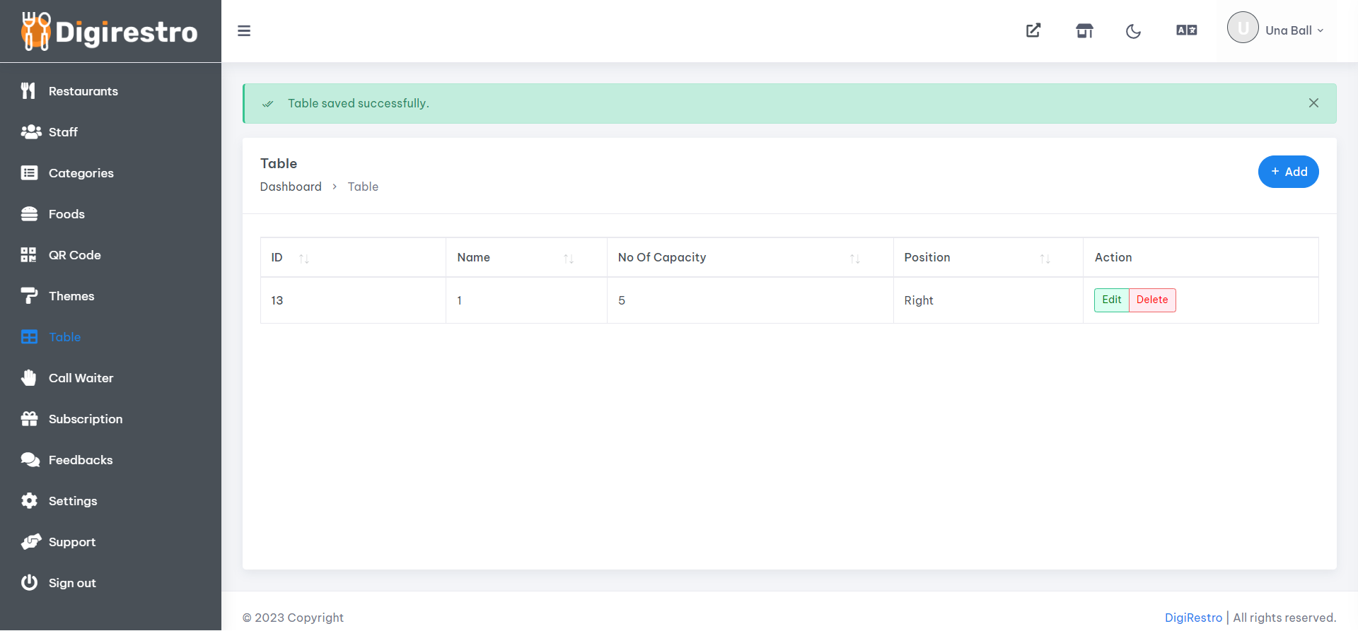 **Add**: Upon clicking this button, you will be directed to the page for creating a new table.